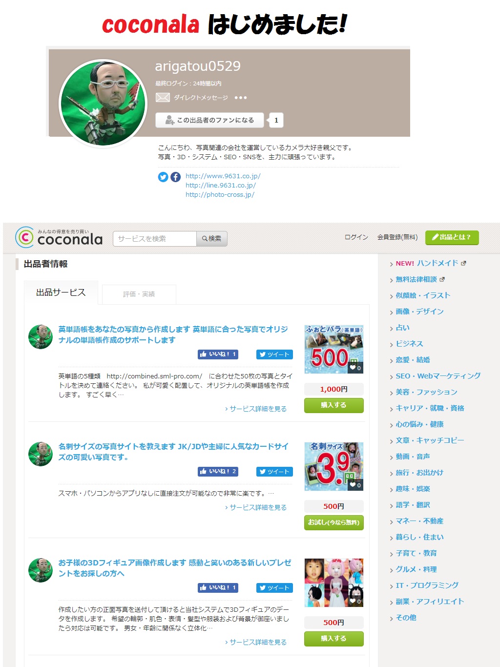 2017年8月»coconalaに登録を致しました ABCデジカメプリント